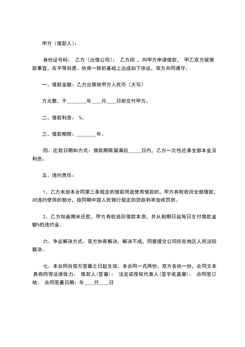出借方:(以下简称甲方) 法定代表人: 借款方:(以下简称乙方)法定代表人: 甲乙双方就乙方向甲方借款一事,双方根据有关法律、法规,在平等、自愿的基础上,为明确责任、恪守信用,经充分协商一致签订本借款合同,并保证共同遵守执行。