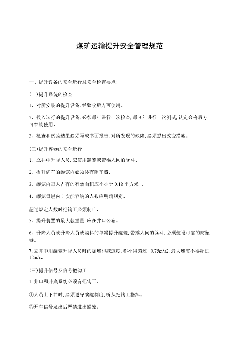 ①人员上下井时,必须遵守乘罐制度,听从把钩工指挥。