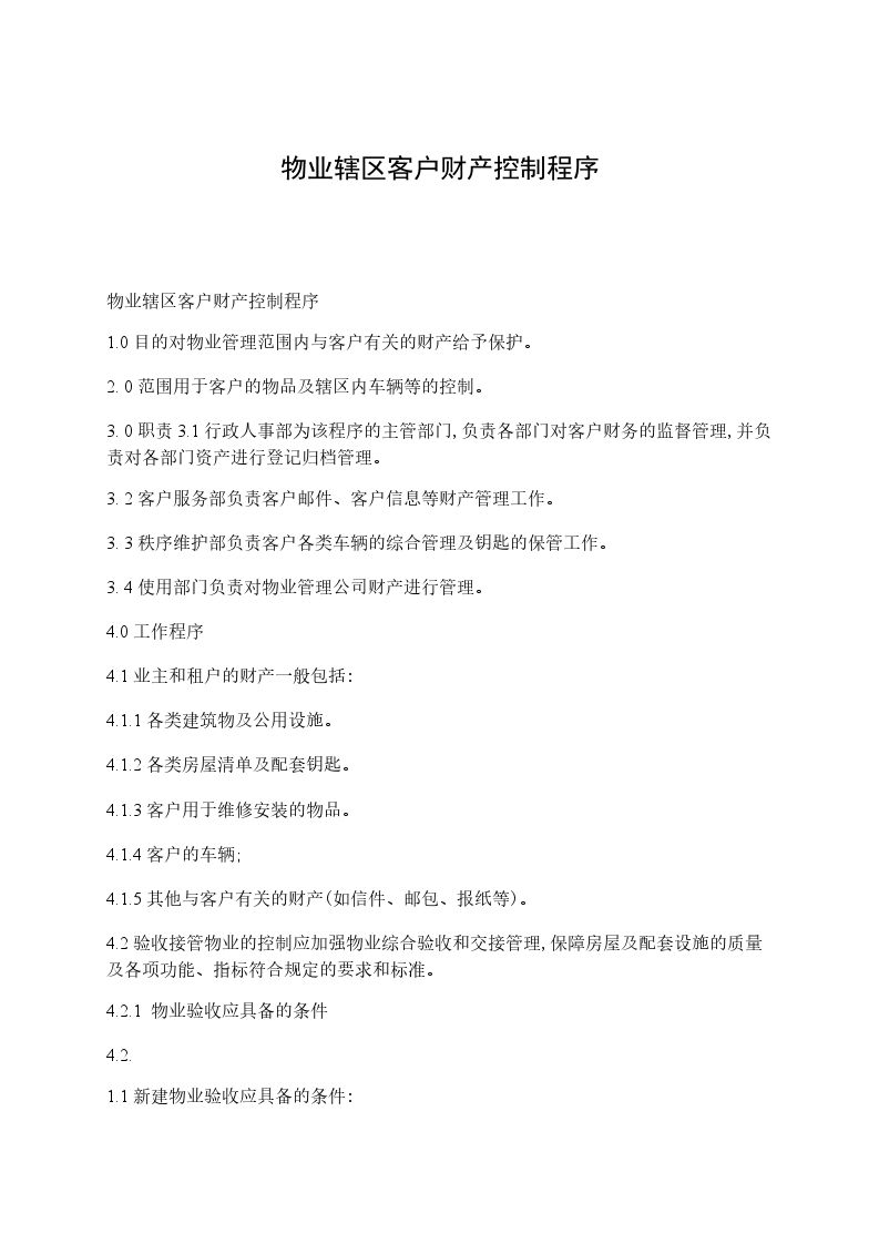 物业辖区客户财产控制程序