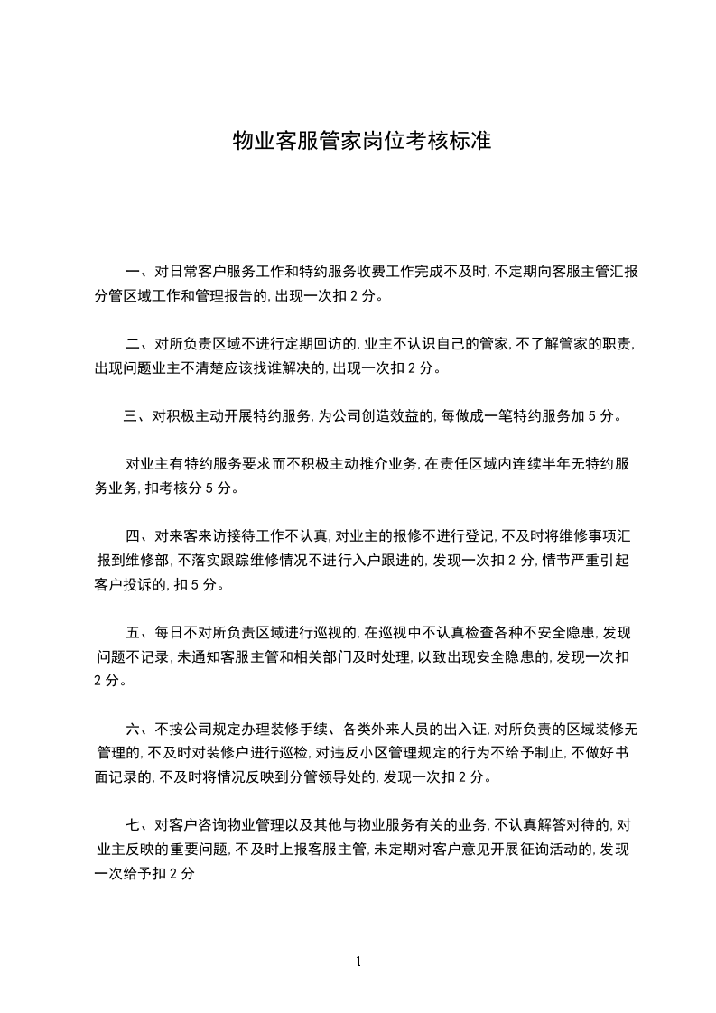 一、对日常客户服务工作和特约服务收费工作完成不及时,不定期向客服主管汇报分管区域工作和管理报告的,出现一次扣2分。