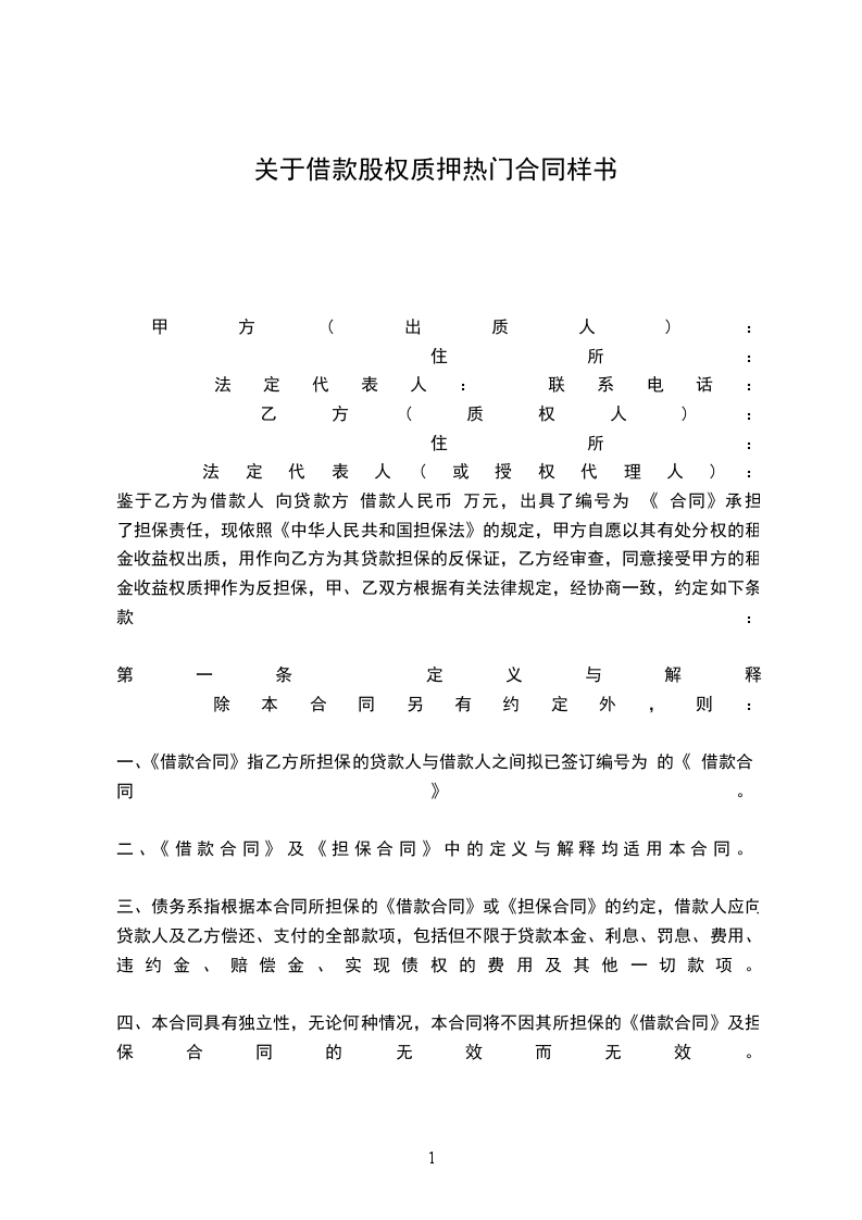 一、《借款合同》指乙方所担保的贷款人与借款人之间拟已签订编号为 的《 借款合同》。
