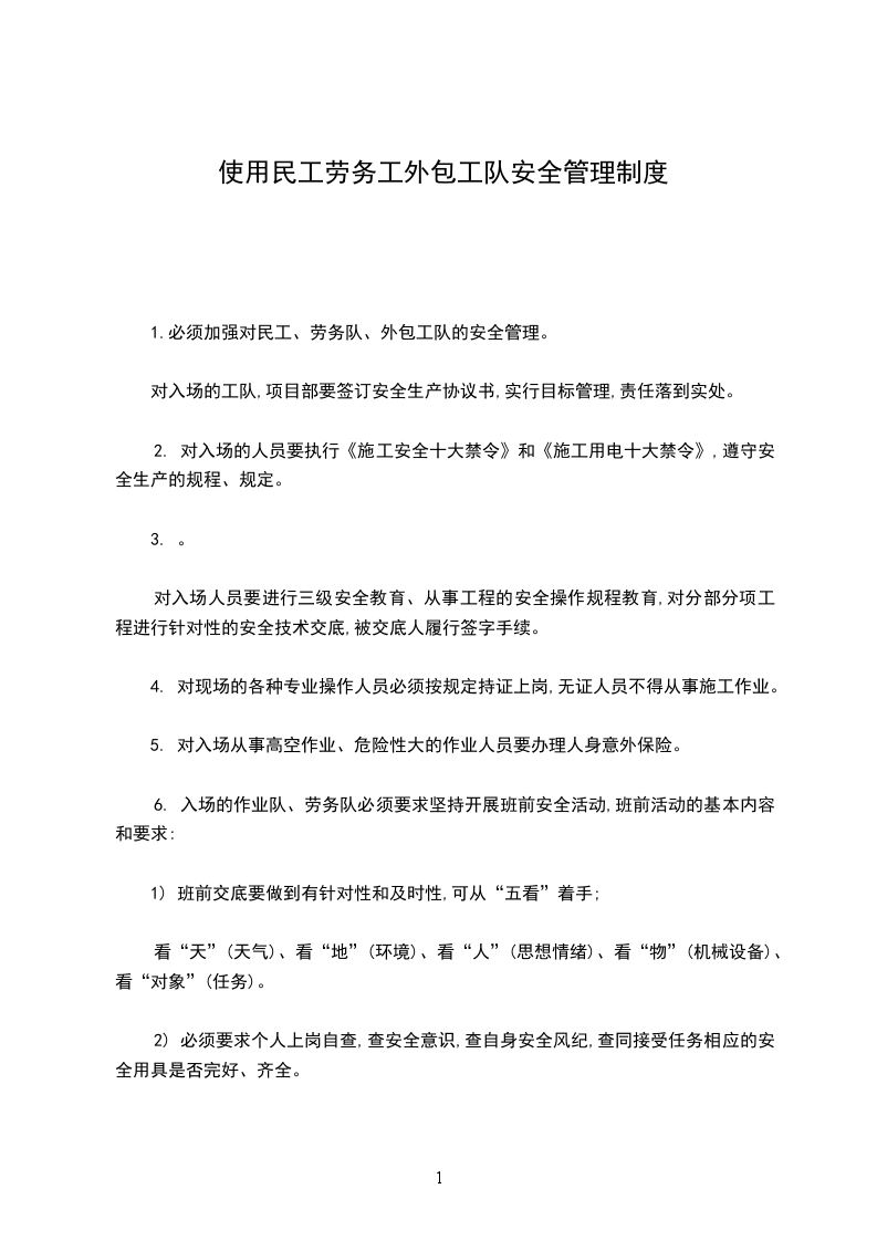 1.必须加强对民工、劳务队、外包工队的安全管理。