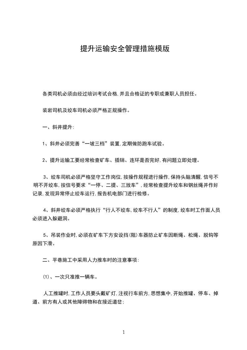 (1)、绞车司机注意力要集中,按信号开、停车,听不清信号不准开车,停车时闭锁闸把必须置于闭锁位置,防止矿车下滑。
