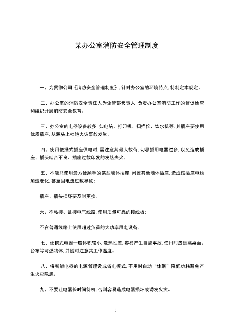 一、为贯彻公司《消防安全管理制度》,针对办公室的环境特点,特制定本规定。
