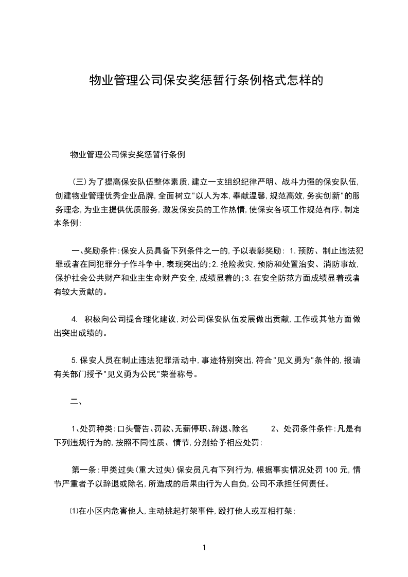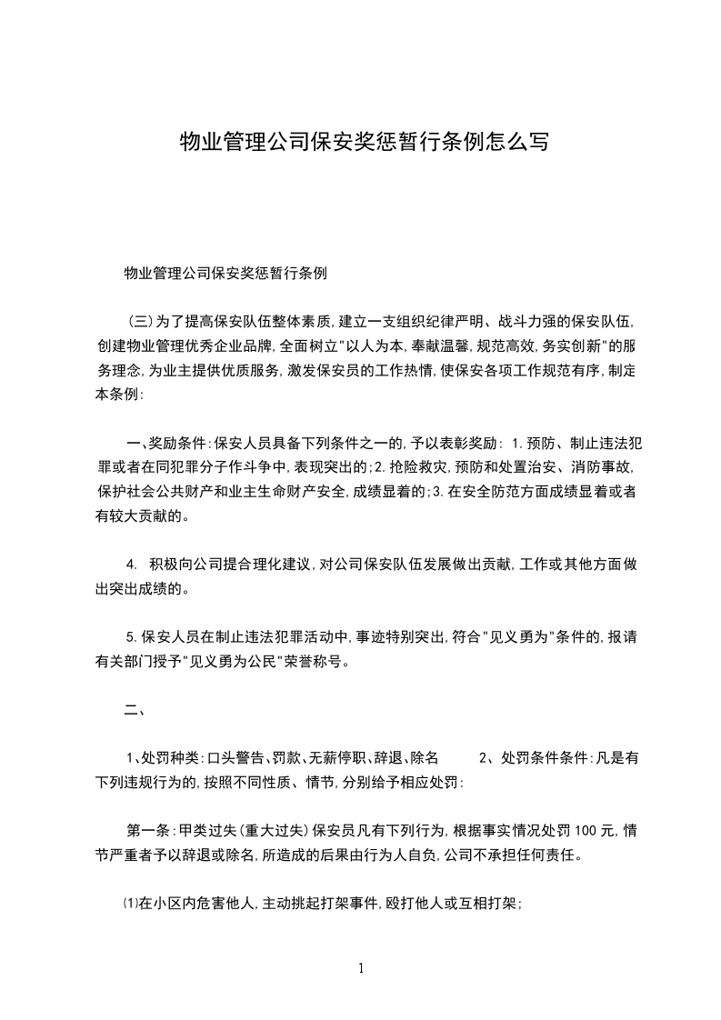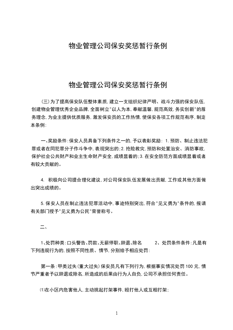 物业管理公司保安奖惩暂行条例