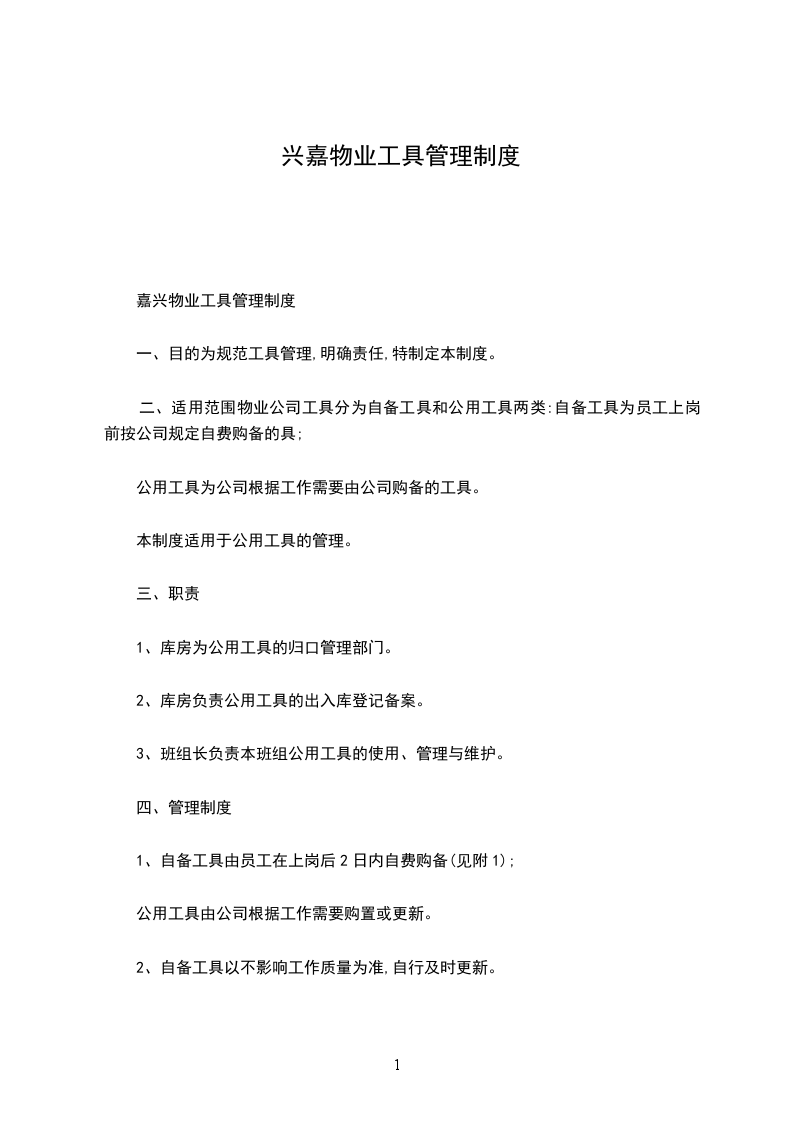 嘉兴物业工具管理制度