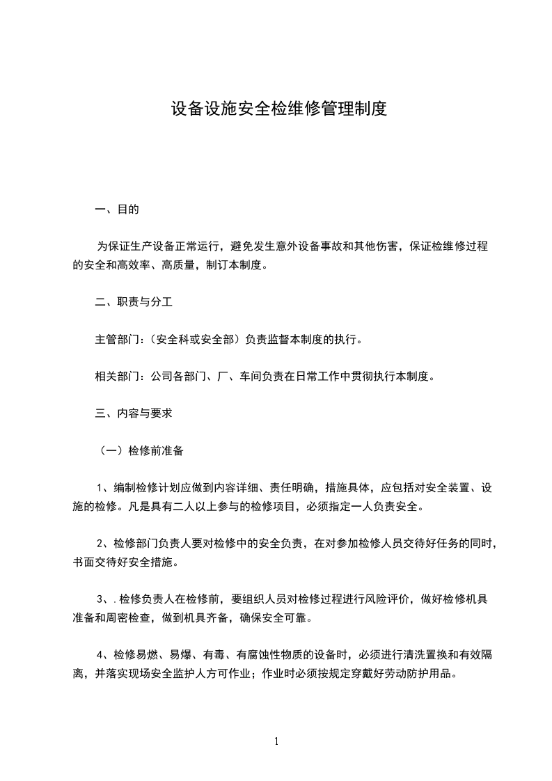 明确公司内所有检维修作业过程的安全管理规定,确保设备检维修安全、顺利、高质量完成,特制定本制度。