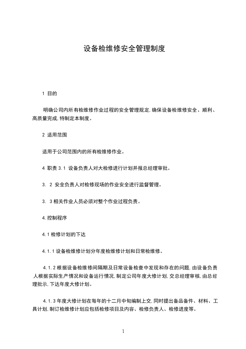 4.1.4日常检维修计划由检维修负责人直接下达。