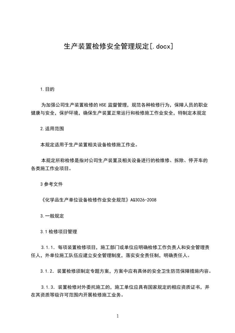 (三)本规定所称检修是指对惠州炼油分公司生产装置及相关设备进行的检维修、拆除、停开车的各类施工作业项目。