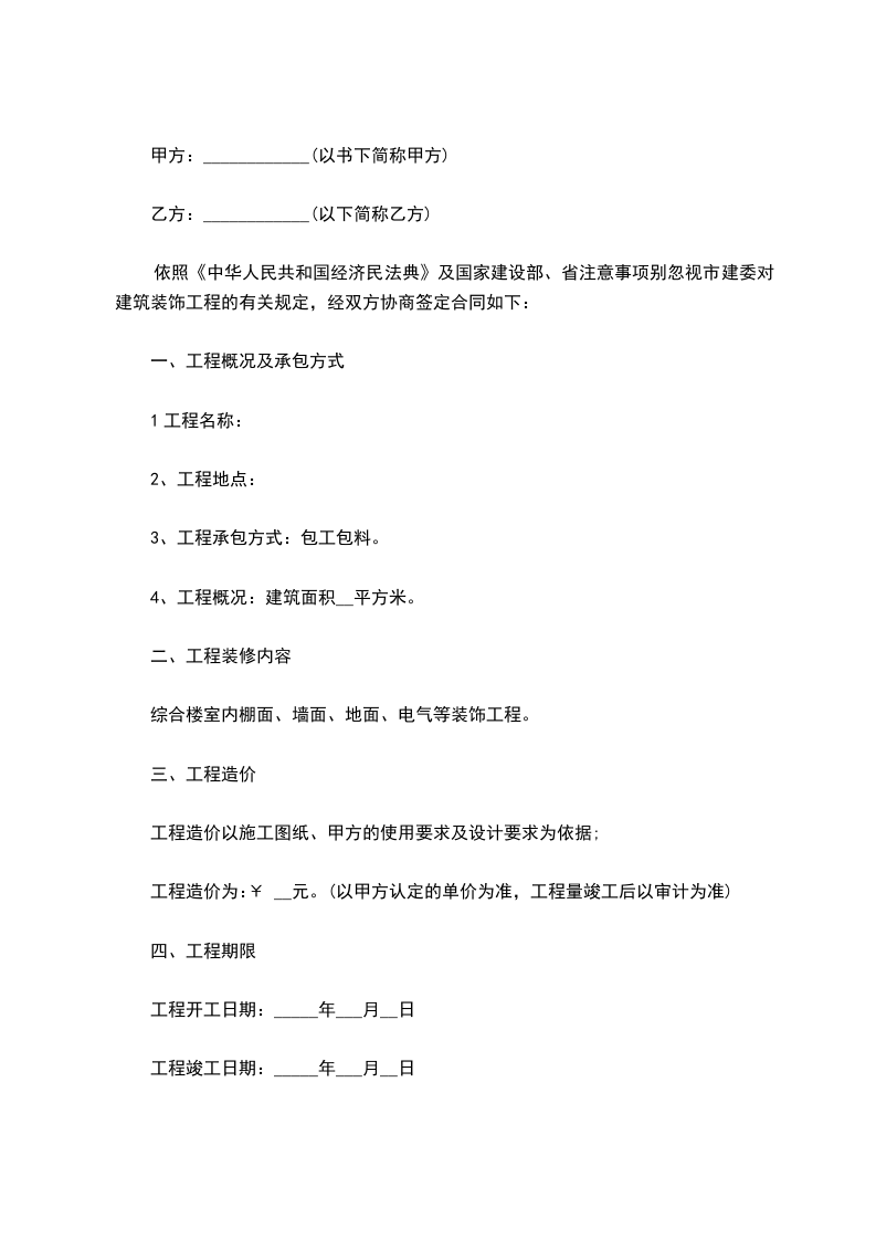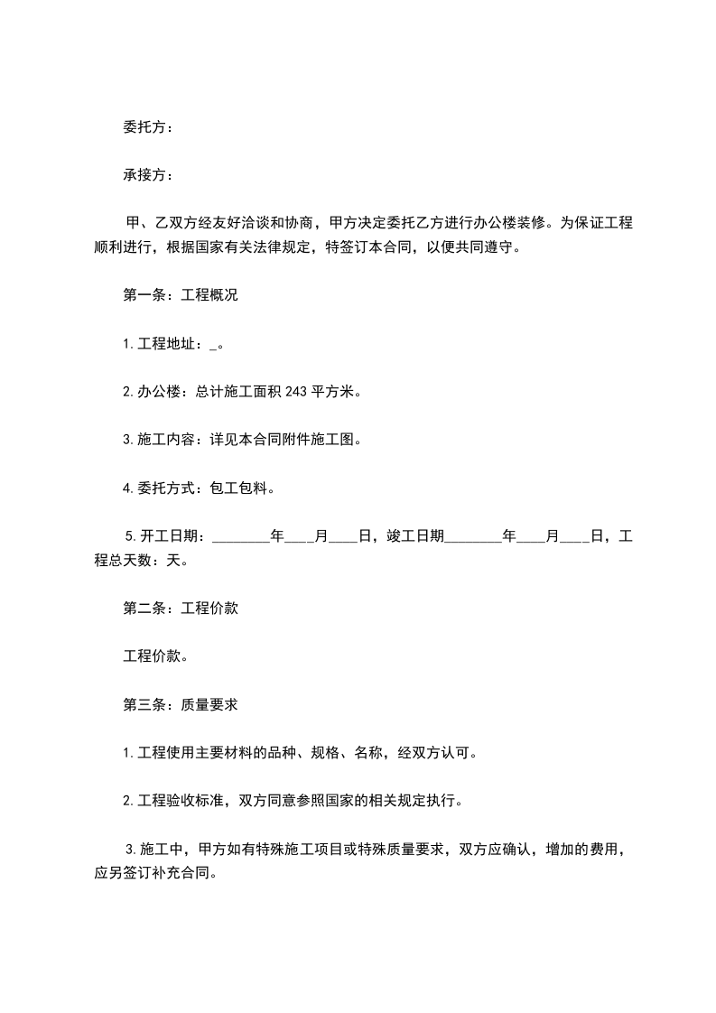 4.7 工程完工时乙方负责办公区的保洁工作已保证甲方正常入住。