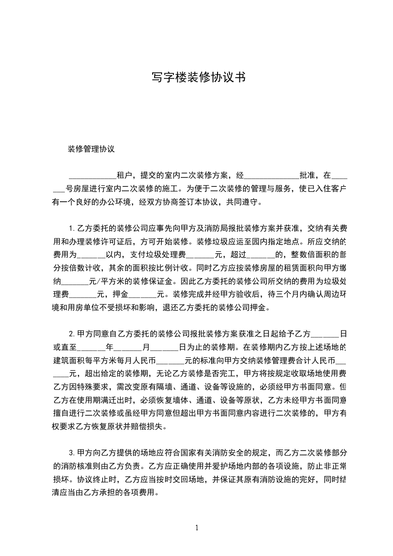 甲方同意乙方对甲方所承租室进行装修施工,乙方保证遵守大厦物业关于二次装修管理规定,双方同意按如下条款在____市签定本合同。