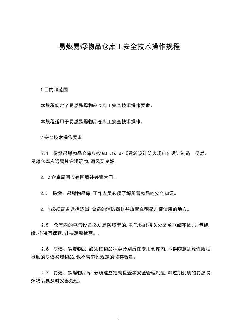 本规程适用于易燃易爆物品仓库工安全技术操作。