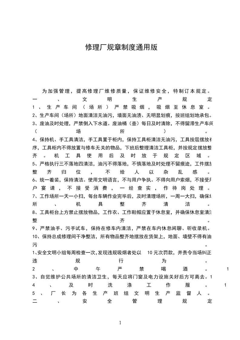 1、本规定适用于维修厂所有员工。