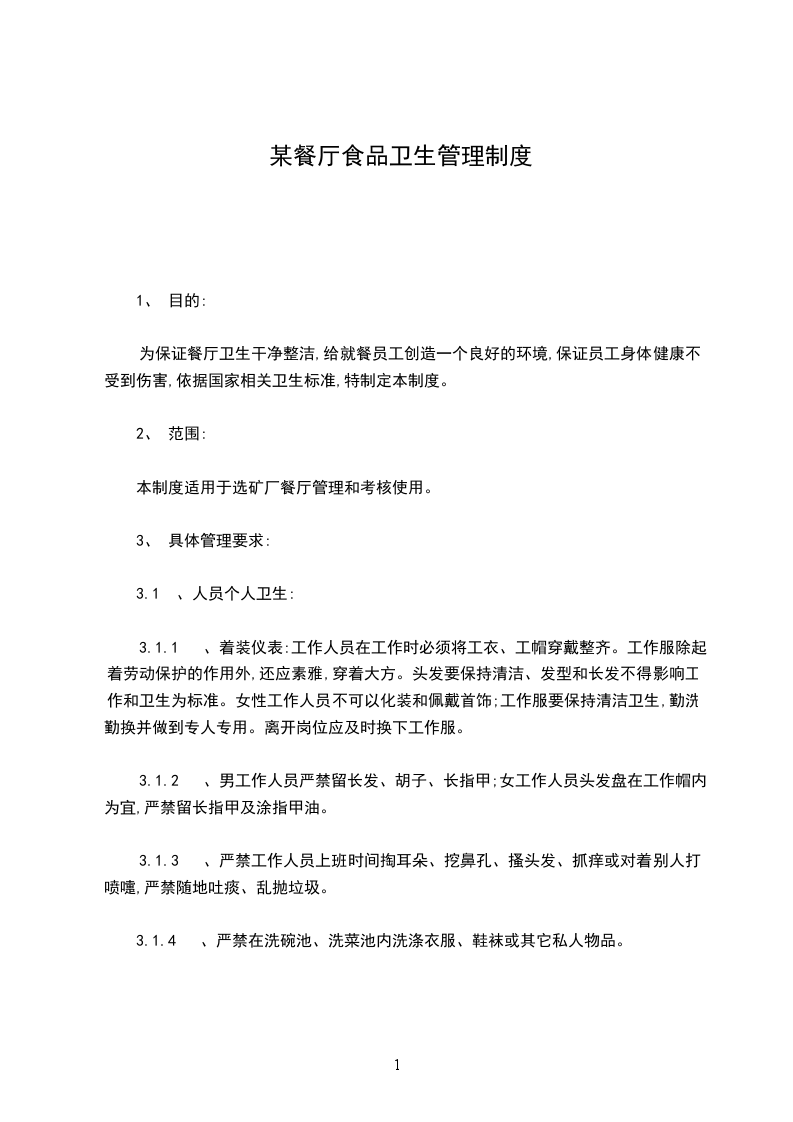 一、餐厅(食堂、服务点)是饮食中心下属的基层单位,一切实际卫生工作都要由餐厅来完成,因此餐厅卫生管理工作要做的更细、更严,要做到天天管,时时抓,不能有丝毫松懈。