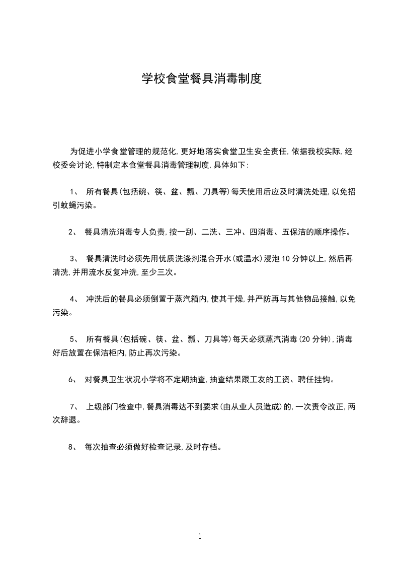 为促进小学食堂管理的规范化,更好地落实食堂卫生安全责任,依据我校实际,经校委会讨论,特制定本食堂餐具消毒管理制度,具体如下: