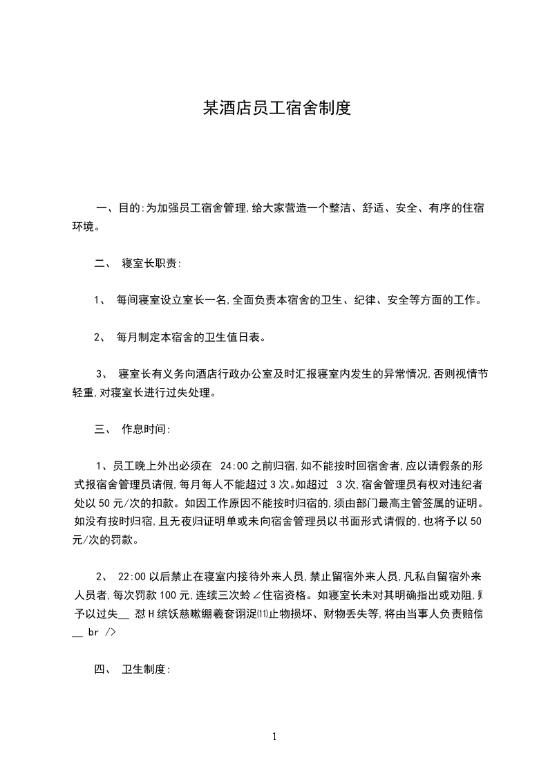 一、目的:为加强员工宿舍管理,给大家营造一个整洁、舒适、安全、有序的住宿环境。
