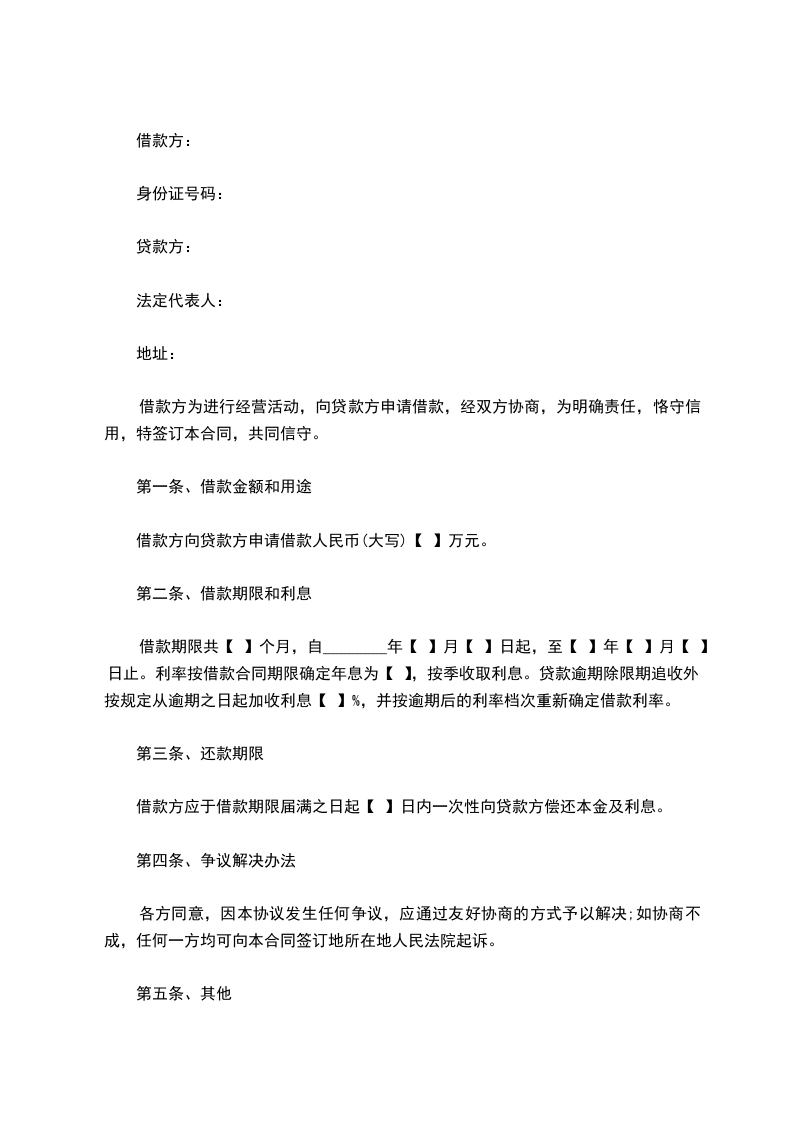 借款方为进行经营活动,向贷款方申请借款,经双方协商,为明确责任,恪守信用,特签订本合同,共同信守。