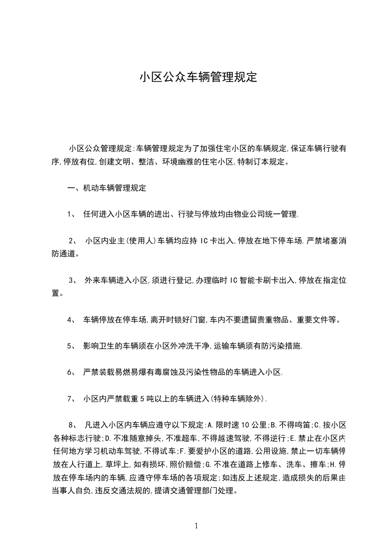 小区公众管理规定:车辆管理规定为了加强住宅小区的车辆规定,保证车辆行驶有序,停放有位,创建文明、整洁、环境幽雅的住宅小区,特制订本规定。