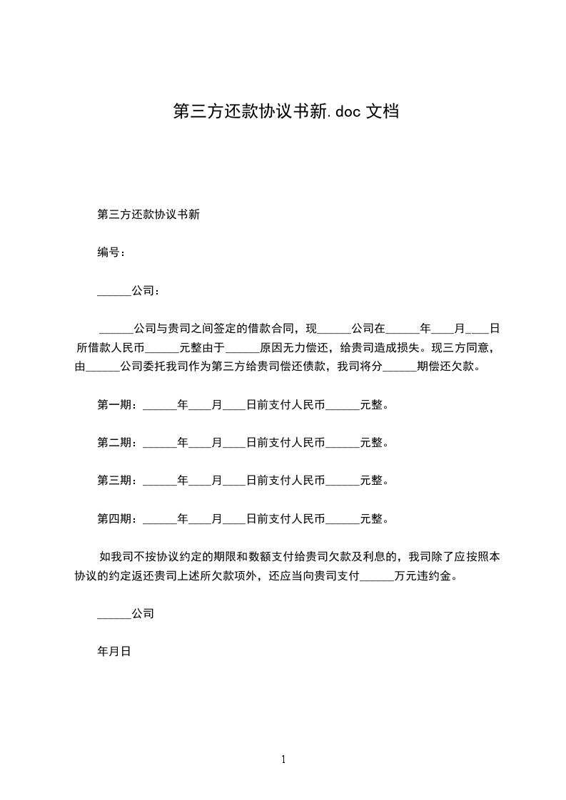 第三方给贵司偿还债款,我司将分XXX期偿还欠款。风险提示: