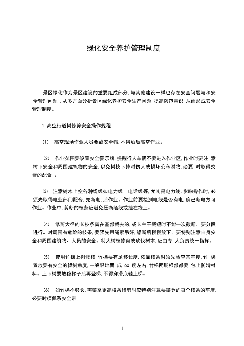 1.高空行道树修剪安全操作规程