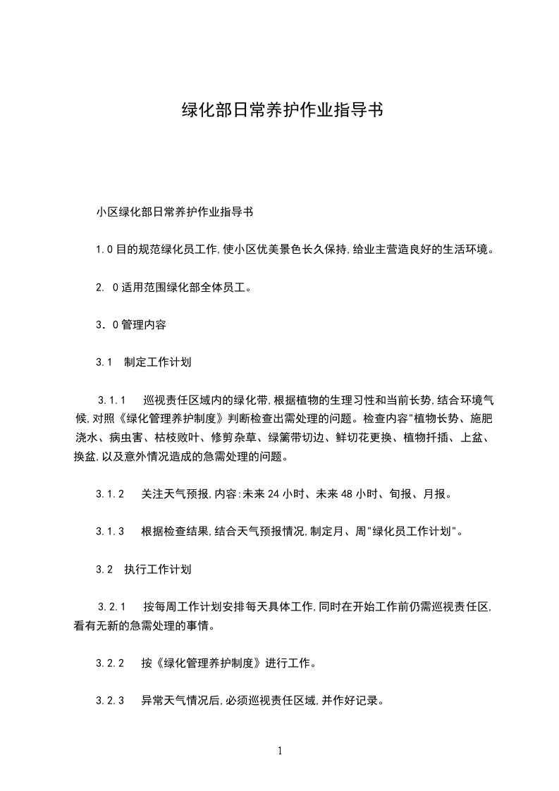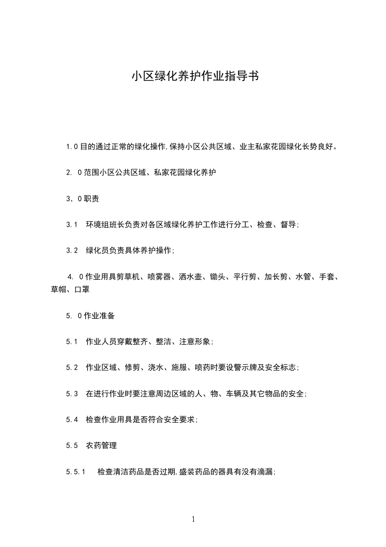 1.0目的通过正常的绿化操作,保持小区公共区域、业主私家花园绿化长势良好。