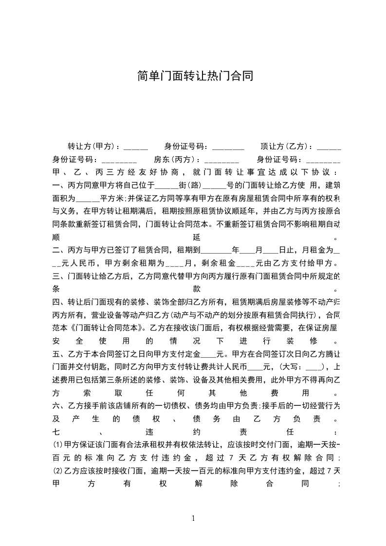 六、转让后如乙方经营为好,甲方不得收回、不得干扰乙方。