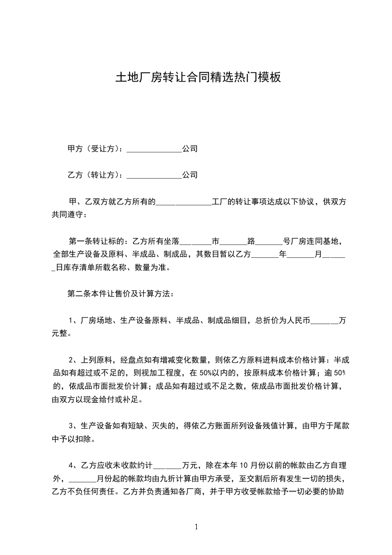 一、甲方同意将自己位于____县工业园赵XX汽修厂转让给乙方使用,建筑面积为 平方米。