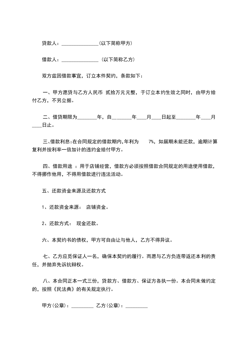 三、借款利息:在合同规定的借款期内,年利为 7%,如届期未能还款,逾期计算复利并按利率一倍加计的违约金给付甲方。