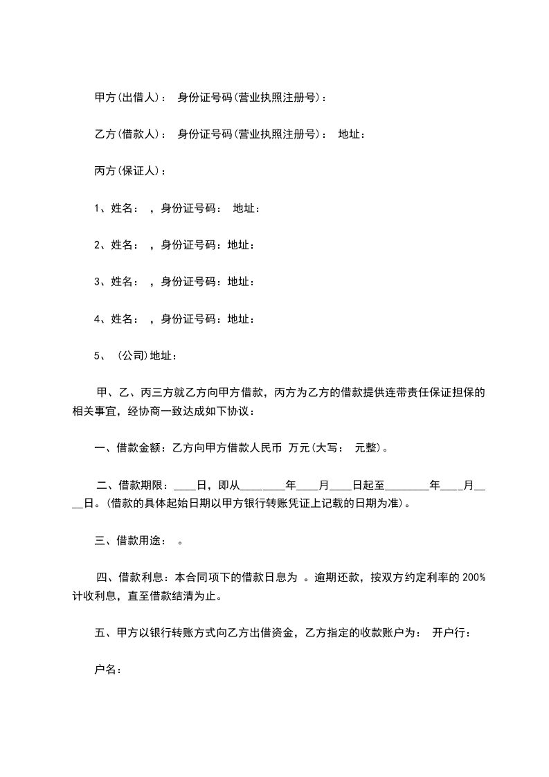 五、甲方以银行转账方式向乙方出借资金,乙方指定的收款账户为: 开户行: