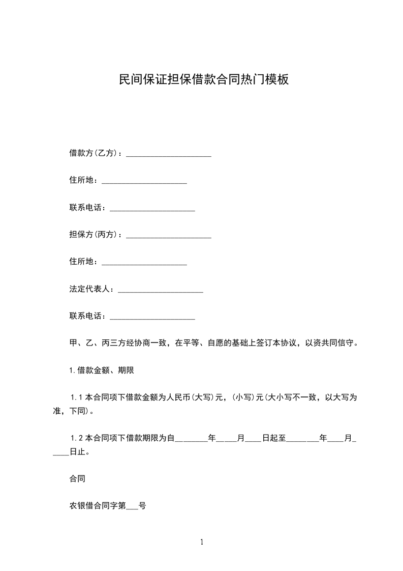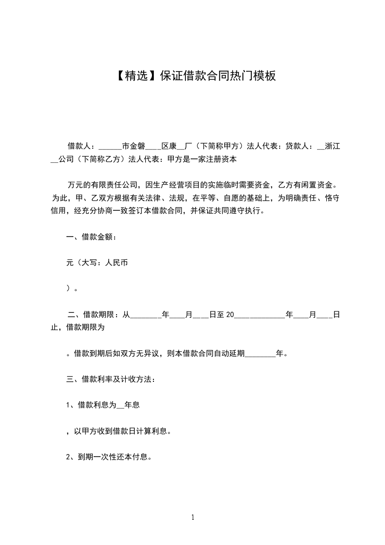 一、借款金额:乙方向甲方借款人民币 万元(大写: 元整)。