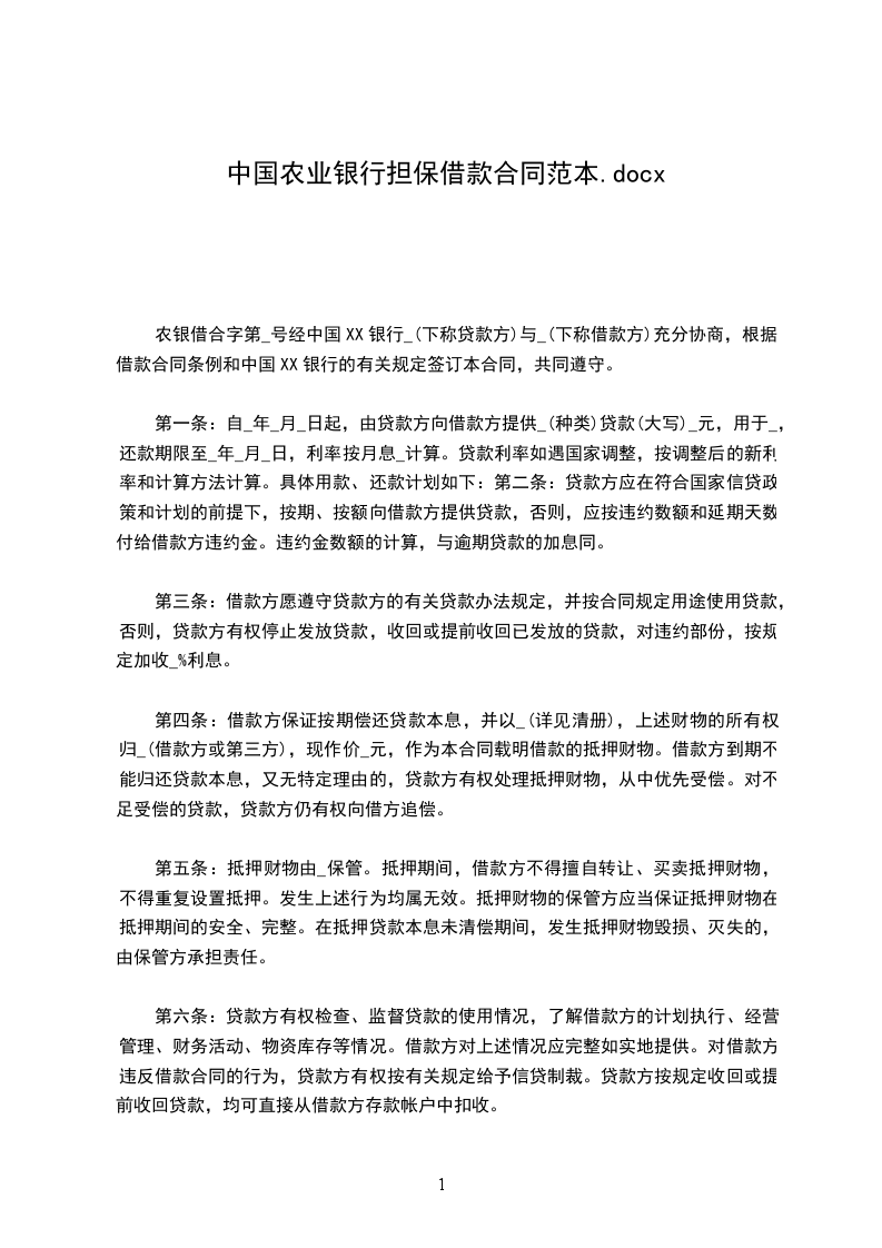 经中国XX银行____________(下称贷款方)与____________(下称借款方)充分协商,根据《民法典》和中国XX银行的有关规定签订本合同,共同遵守。