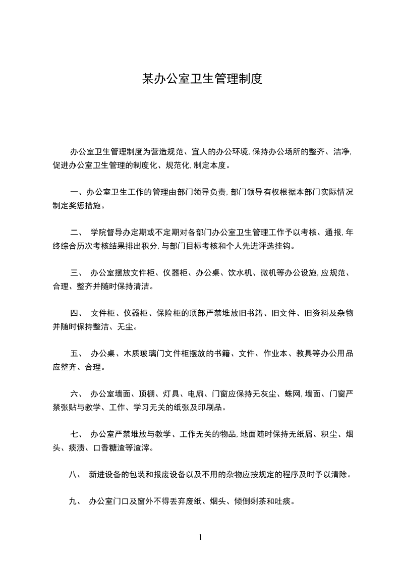 办公室卫生管理制度为营造规范、宜人的办公环境,保持办公场所的整齐、洁净,促进办公室卫生管理的制度化、规范化,制定本度。