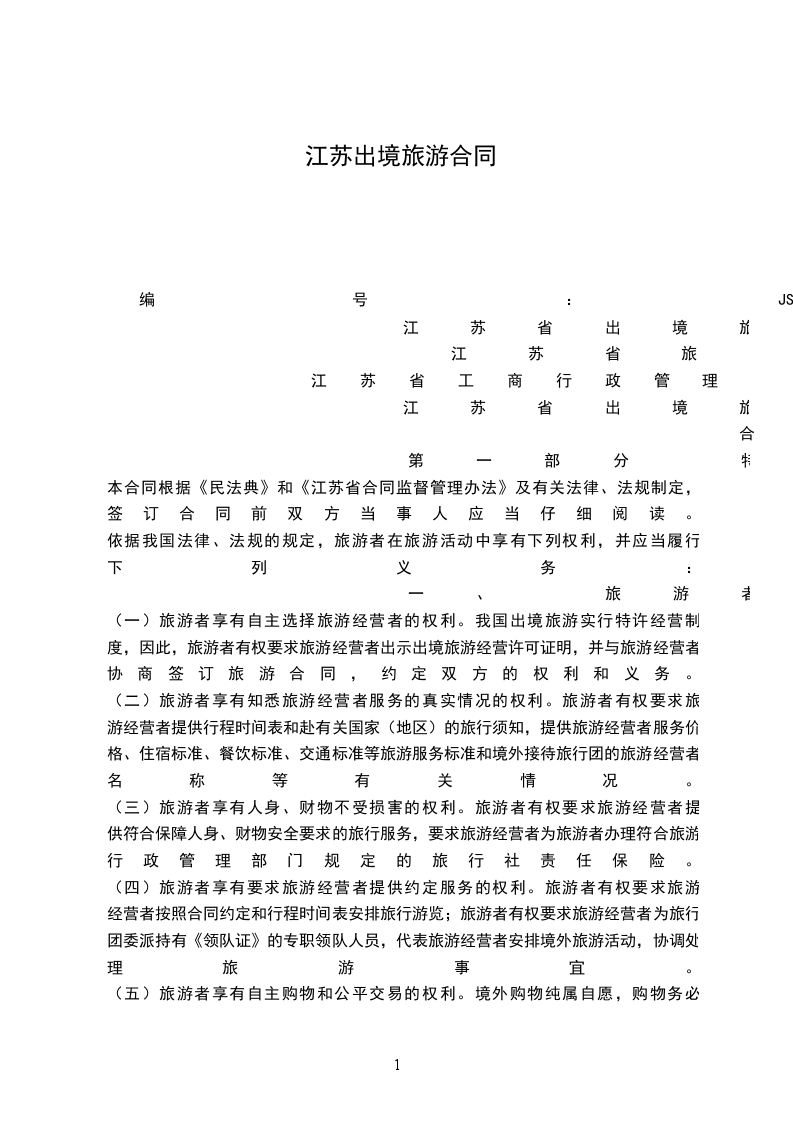 江苏省出境旅游合同