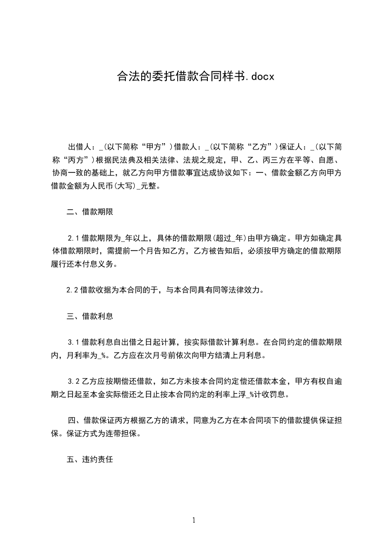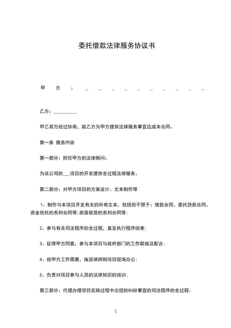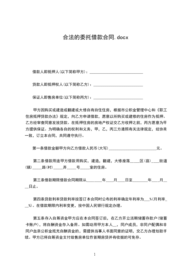 贷款人:__________________(以下简称甲方) 借款人:________________(以下简称乙方) 双方兹因借款事宜,订立本件契约,条款如下: