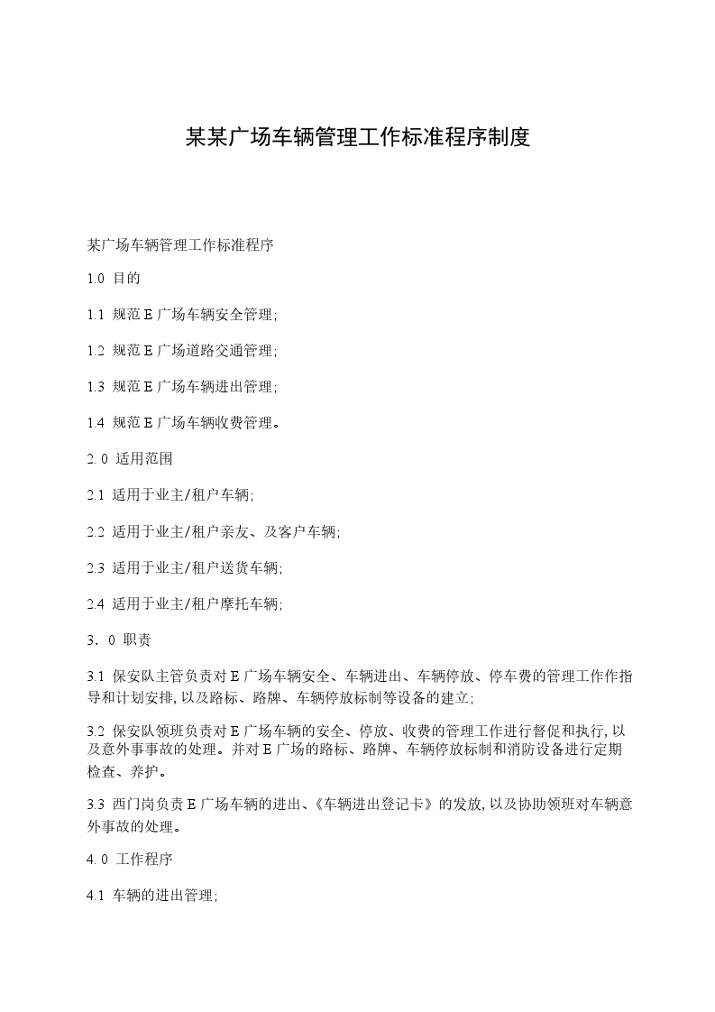 某广场车辆管理措施随着社会机动车辆拥有量的上升,车辆的停放及管理已成为物业管理工作中的热点问题。物业管理企业应充分挖掘现有物业条件,科学管理,妥善经营。针对__ __ 广场现有条件,就车辆管理有如下设想。