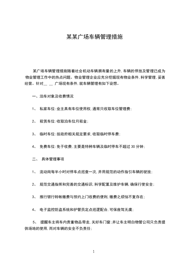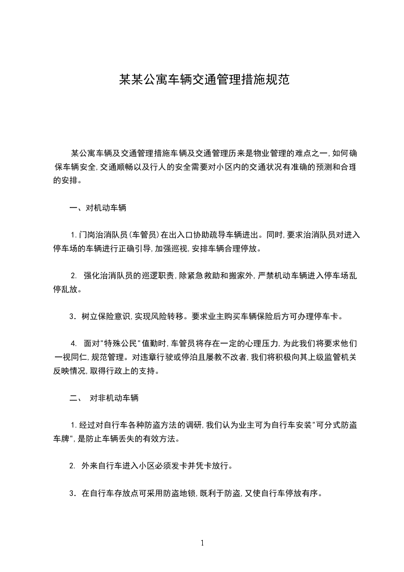 某公寓车辆及交通管理措施车辆及交通管理历来是物业管理的难点之一,如何确保车辆安全,交通顺畅以及行人的安全需要对小区内的交通状况有准确的预测和合理的安排。