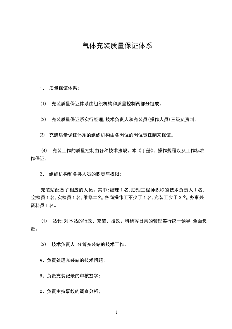 (2) 充装质量保证系实行经理,技术负责人和充装员(操作人员)三级负责制。