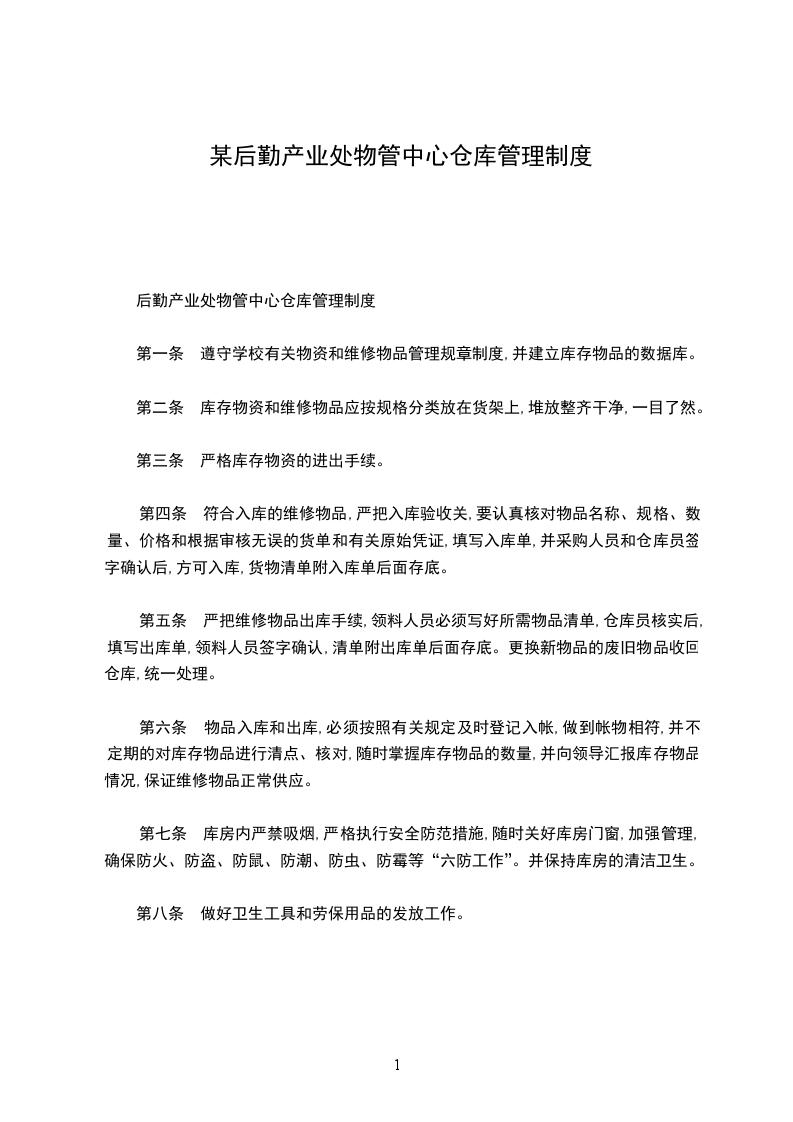 第一条 遵守学校有关物资和维修物品管理规章制度,并建立库存物品的数据库。
