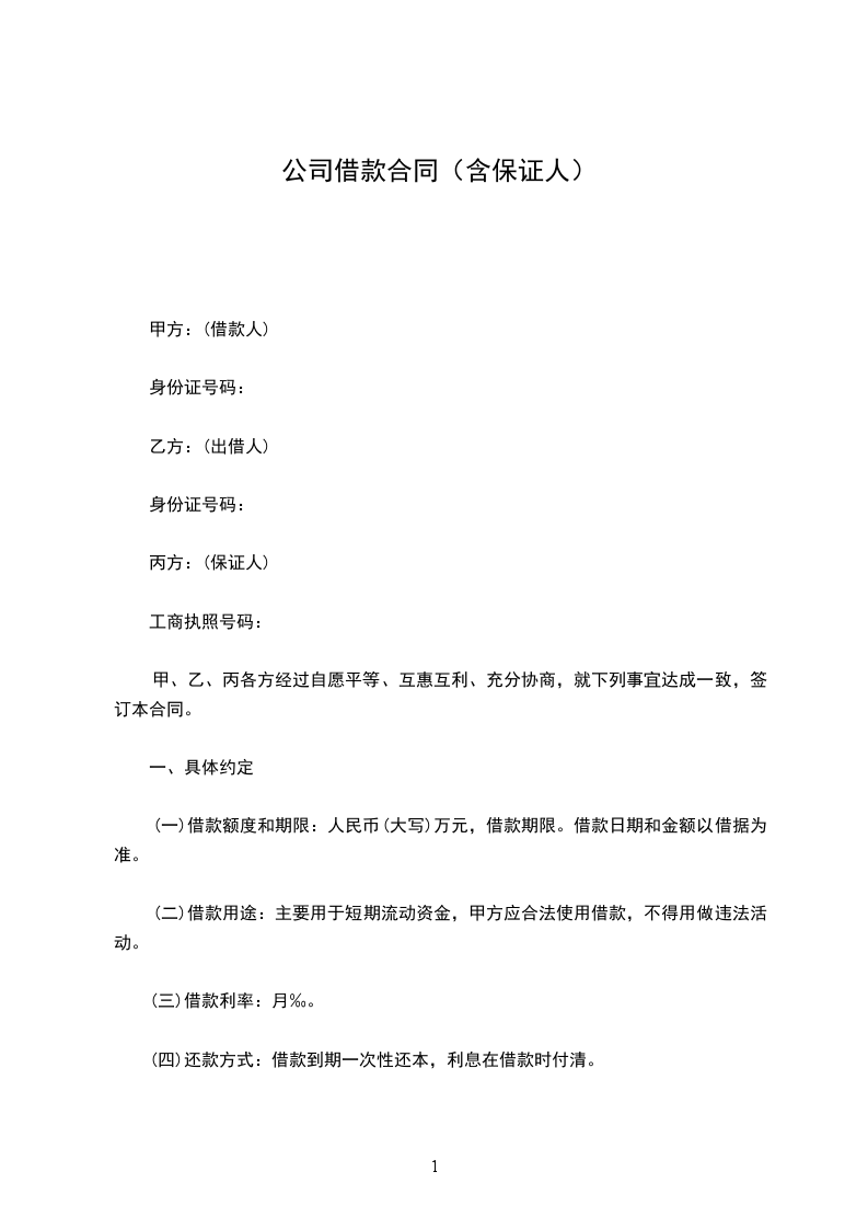 (一)在本合同约定的借款,丙方做为保证人对甲方在本合同项下的借款承担连带保证责任。