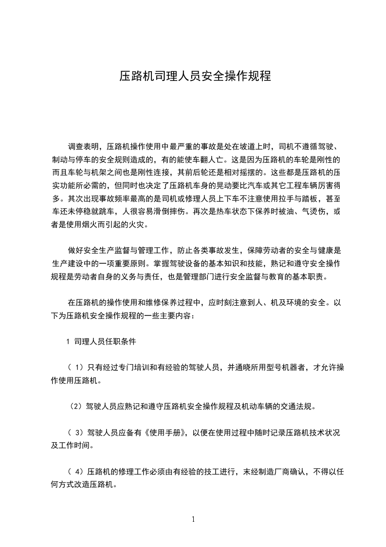 (1)只有经过专门培训和有经验的驾驶人员,并通晓所用型号机器者,才允许操作使用压路机。