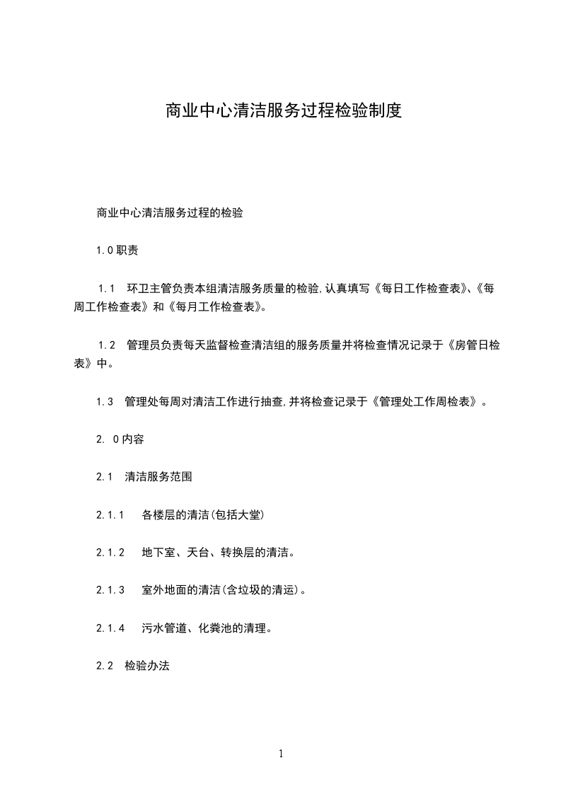1.1 环卫主管负责本组清洁服务质量的检验,认真填写《每日工作检查表》、《每周工作检查表》和《每月工作检查表》。