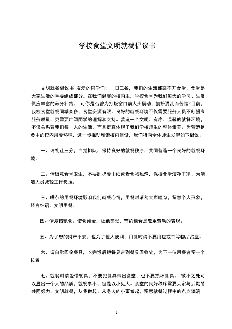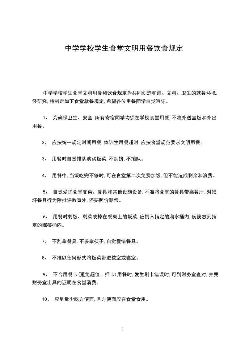 中学学校学生食堂文明用餐和饮食规定为共同创造和谐、文明、卫生的就餐环境,经研究,特制定如下食堂就餐规定,希望各位用餐同学自觉遵守。