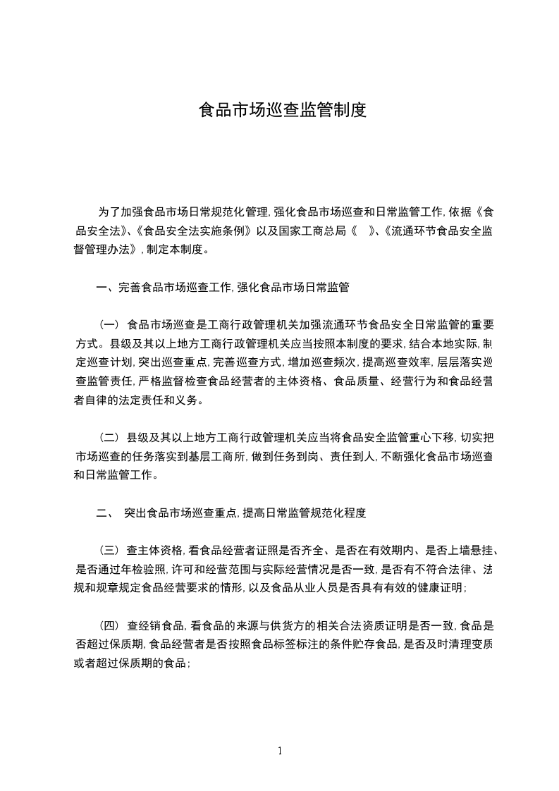 一、完善食品市场巡查工作,强化食品市场日常监管