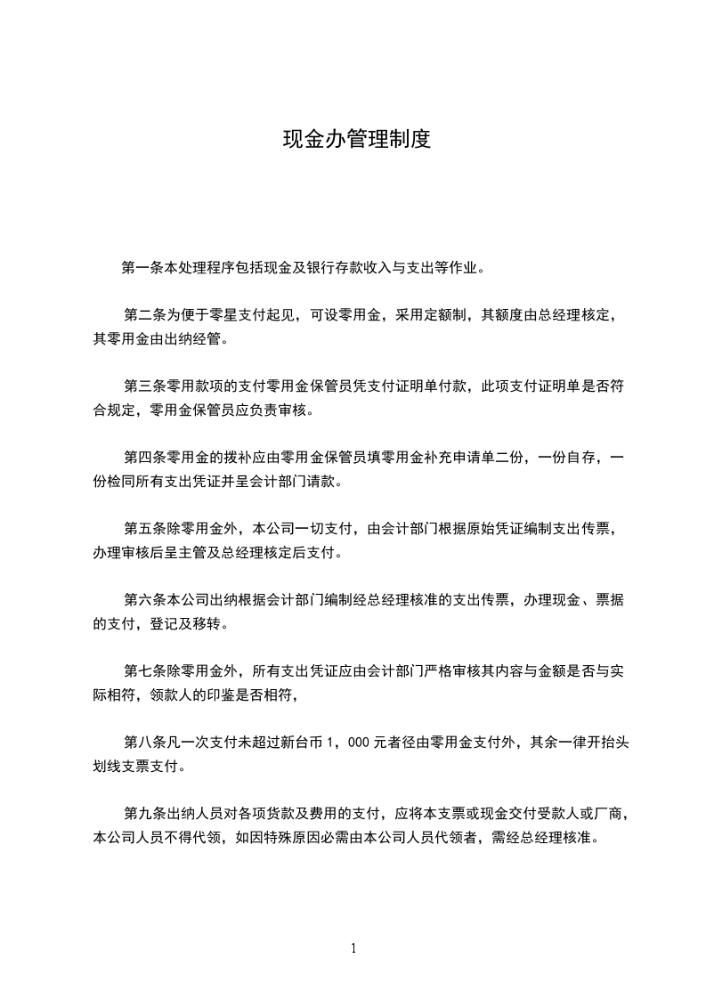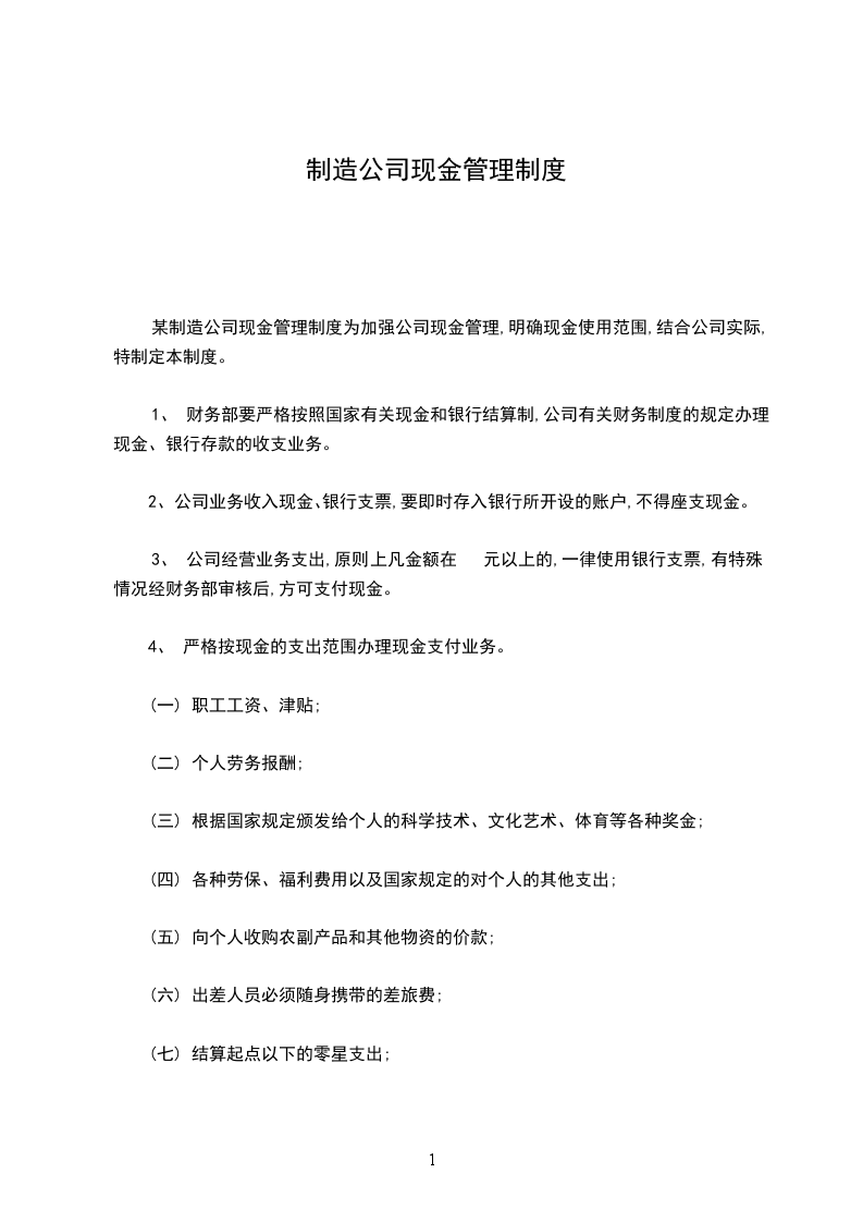 某制造公司现金管理制度为加强公司现金管理,明确现金使用范围,结合公司实际,特制定本制度。