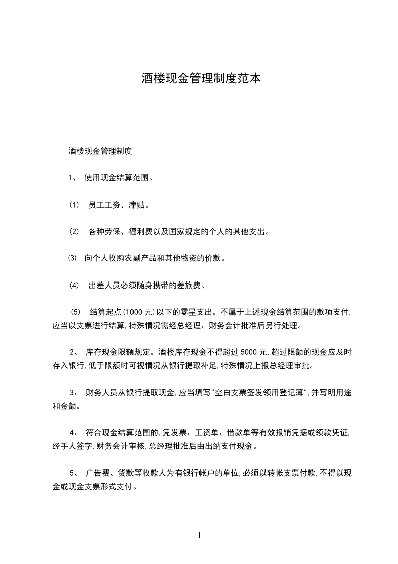 3、 公司经营业务支出,原则上凡金额在 元以上的,一律使用银行支票,有特殊情况经财务部审核后,方可支付现金。