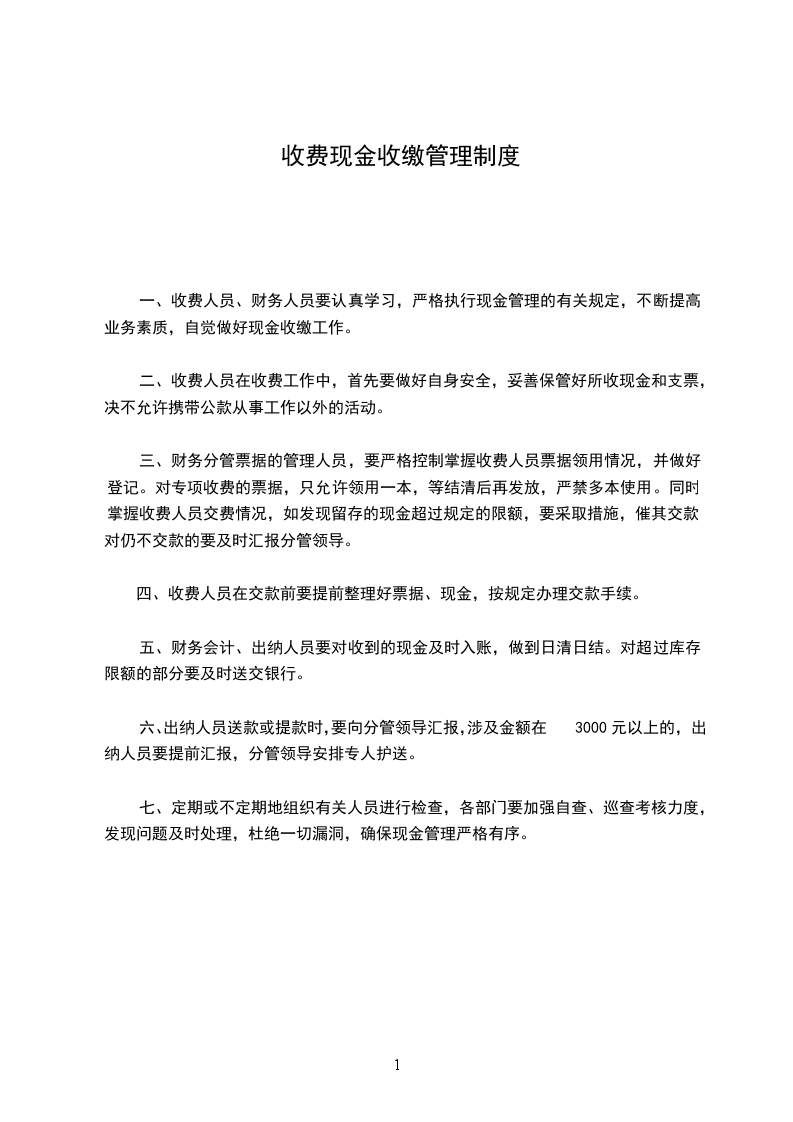 2、 公司业务收入现金、银行支票,要即时存入银行所开设的账户,不得座支现金。
