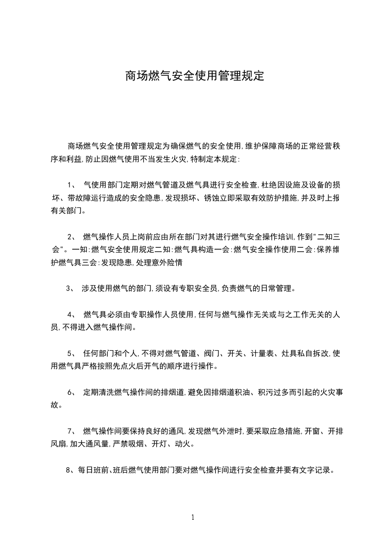 商场燃气安全使用管理规定为确保燃气的安全使用,维护保障商场的正常经营秩序和利益,防止因燃气使用不当发生火灾,特制定本规定: