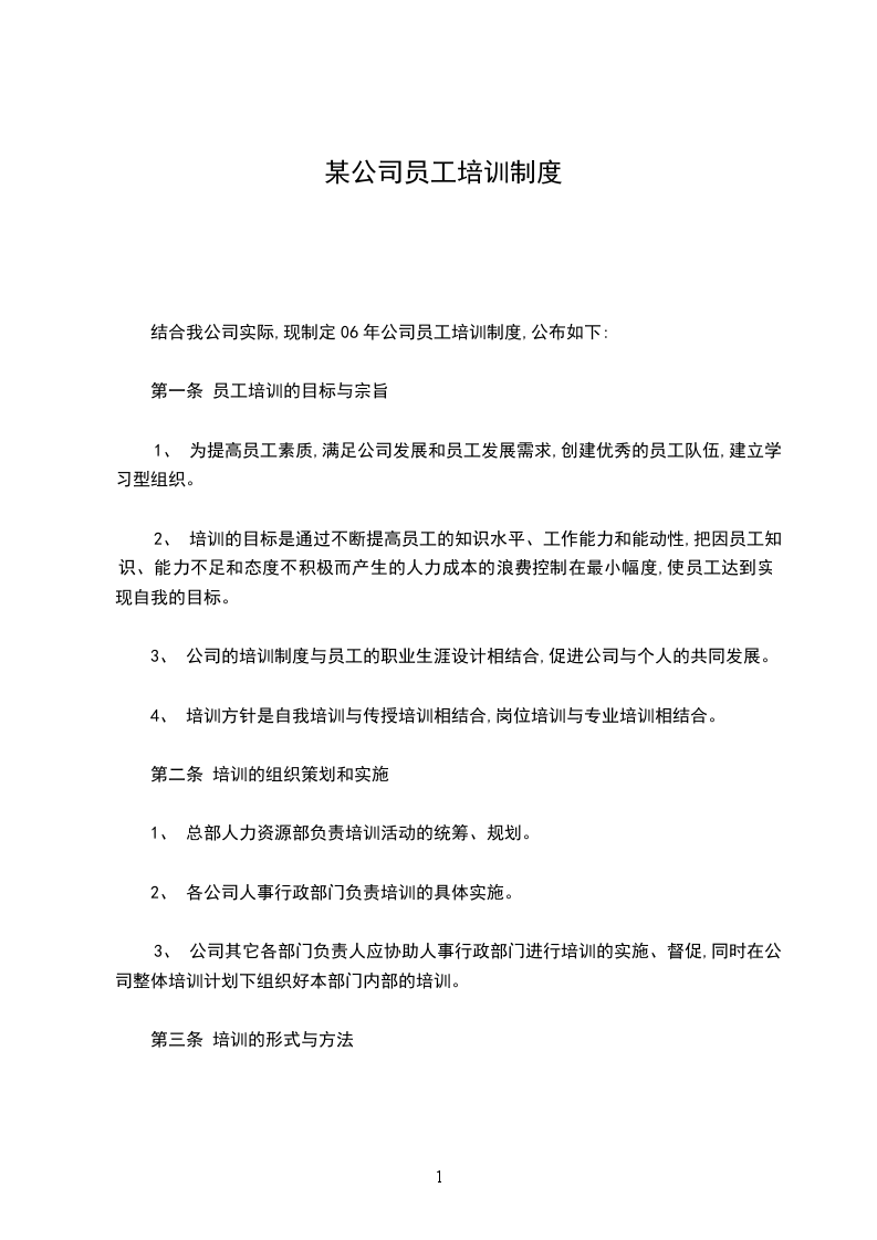 第一条 员工培训的目标与宗旨