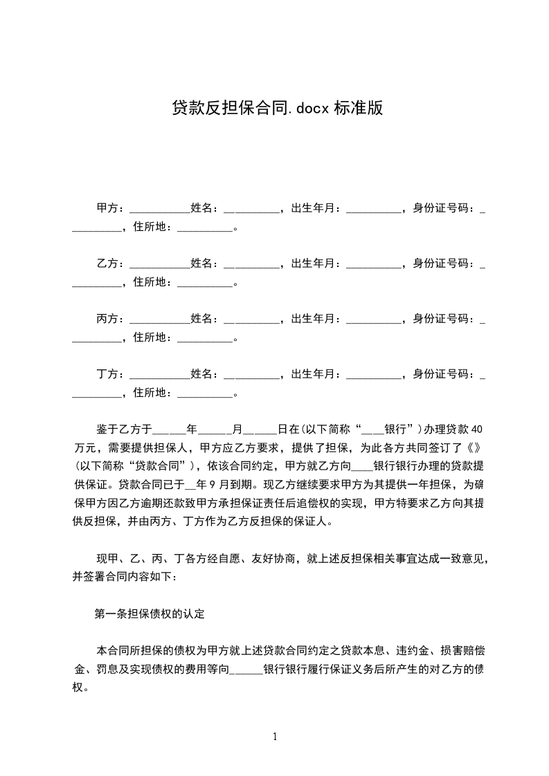 1、乙方自愿为债务人从甲方为其提供保证担保开始,所形成的保证担保责任范围内的保证担保金额提供反担保措施。 以甲方与主合同债权人(银行或信用社)签订的《保证合同》为准,包括但不限于《借款(保证)合同》或XXX等主合同项下的债务本金、利息、复息、罚息、违约金、赔偿金,主合同债权人实现债权的一切费用和甲方向主合同债权人应当承担的其他责任。 最高额债权为 元。