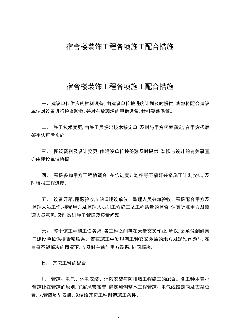 宿舍楼装饰工程各项施工配合措施